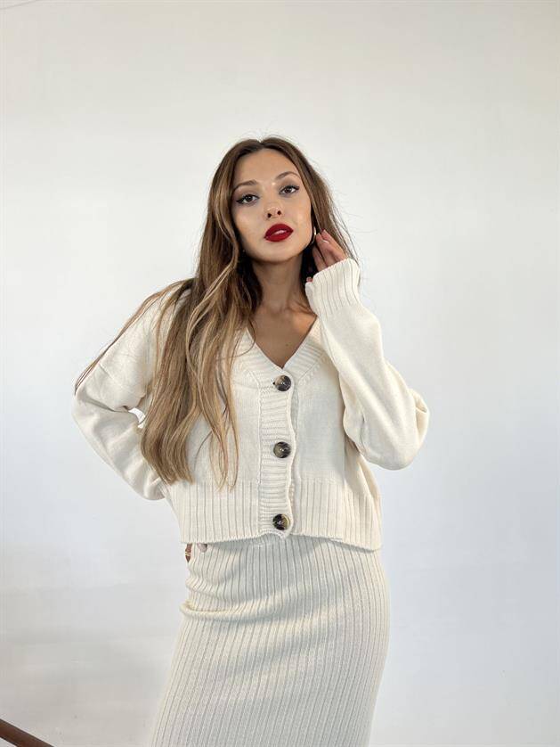 3100 DÜĞMELİ HIRKA ETEKLİ TAKIM-KREM