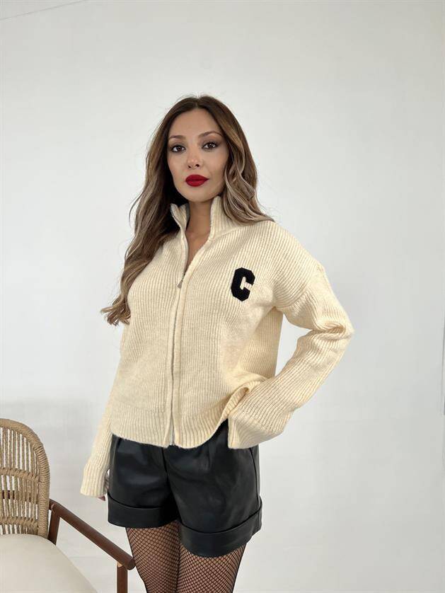 3907 TRİKO ŞARDONLU ARMALI HIRKA-KREM