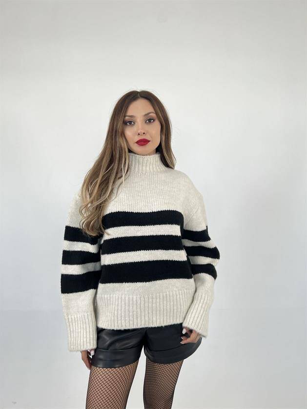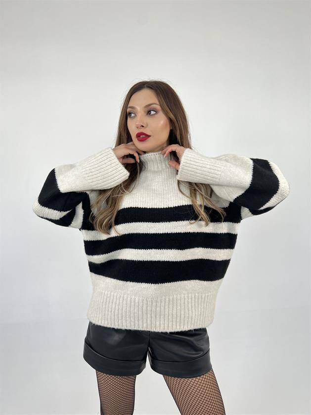 3941 ÇİZGİLİ ŞARDON KAZAK-KREM-SİYAH