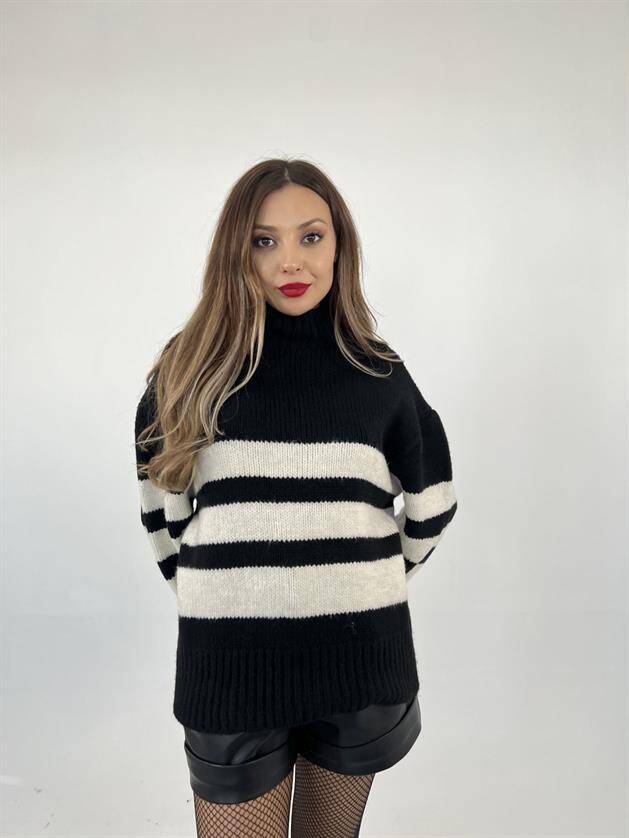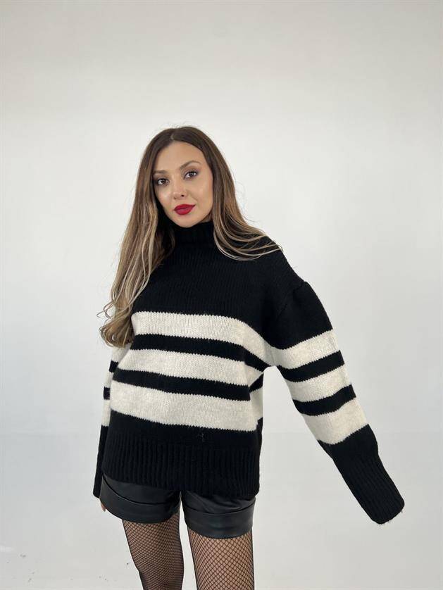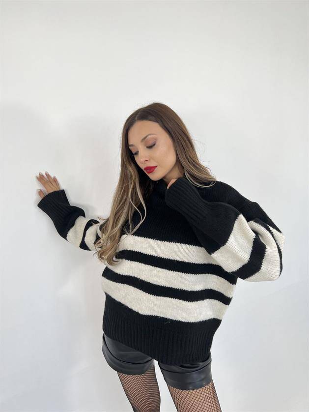3941 ÇİZGİLİ ŞARDON KAZAK-SİYAH-KREM