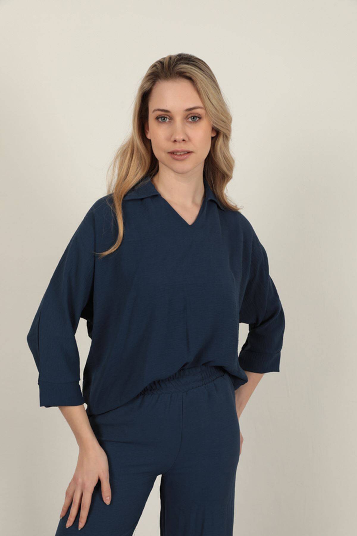 Aerobin Kumaş V Gömlek Yaka Kadın Gömlek-Lacivert