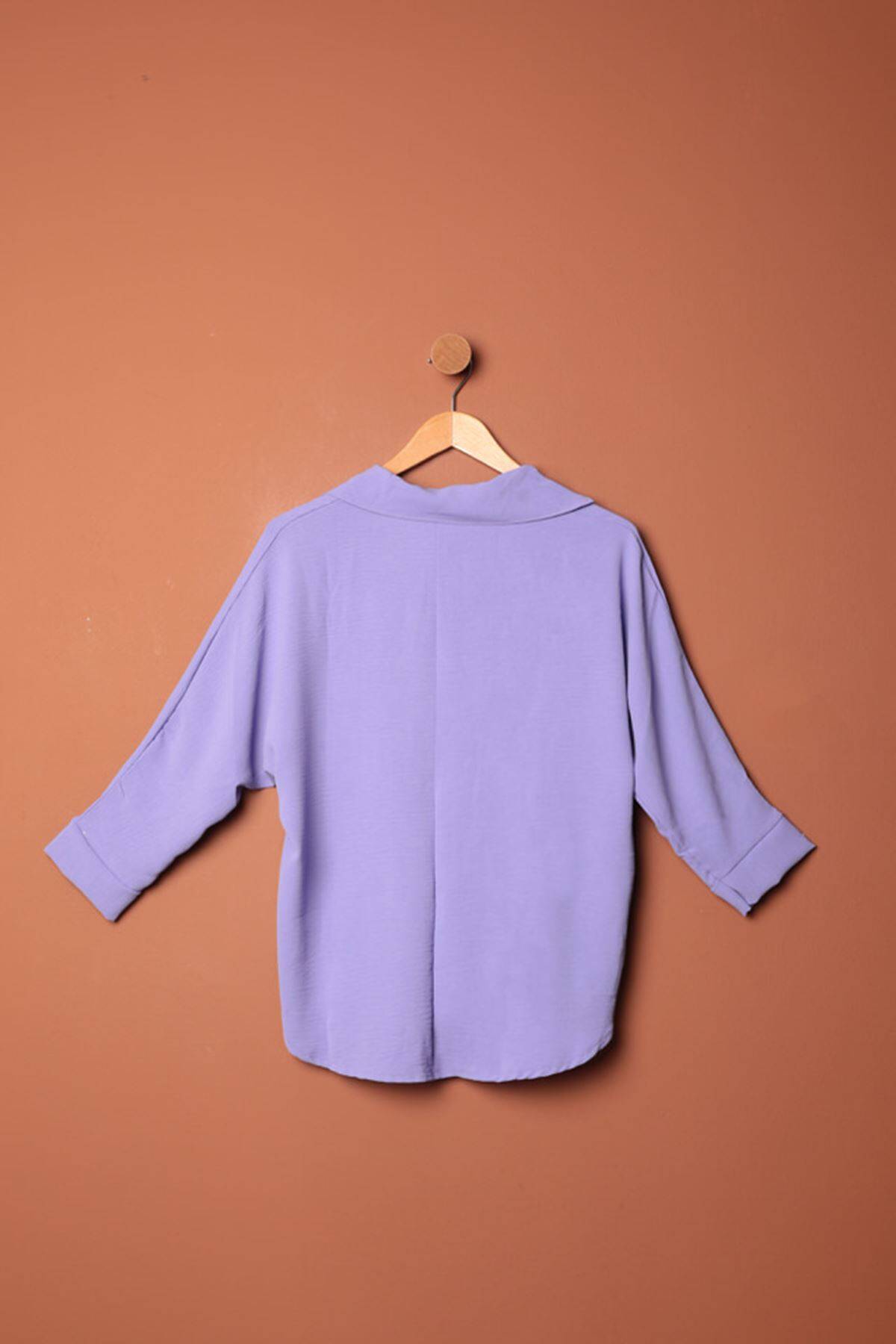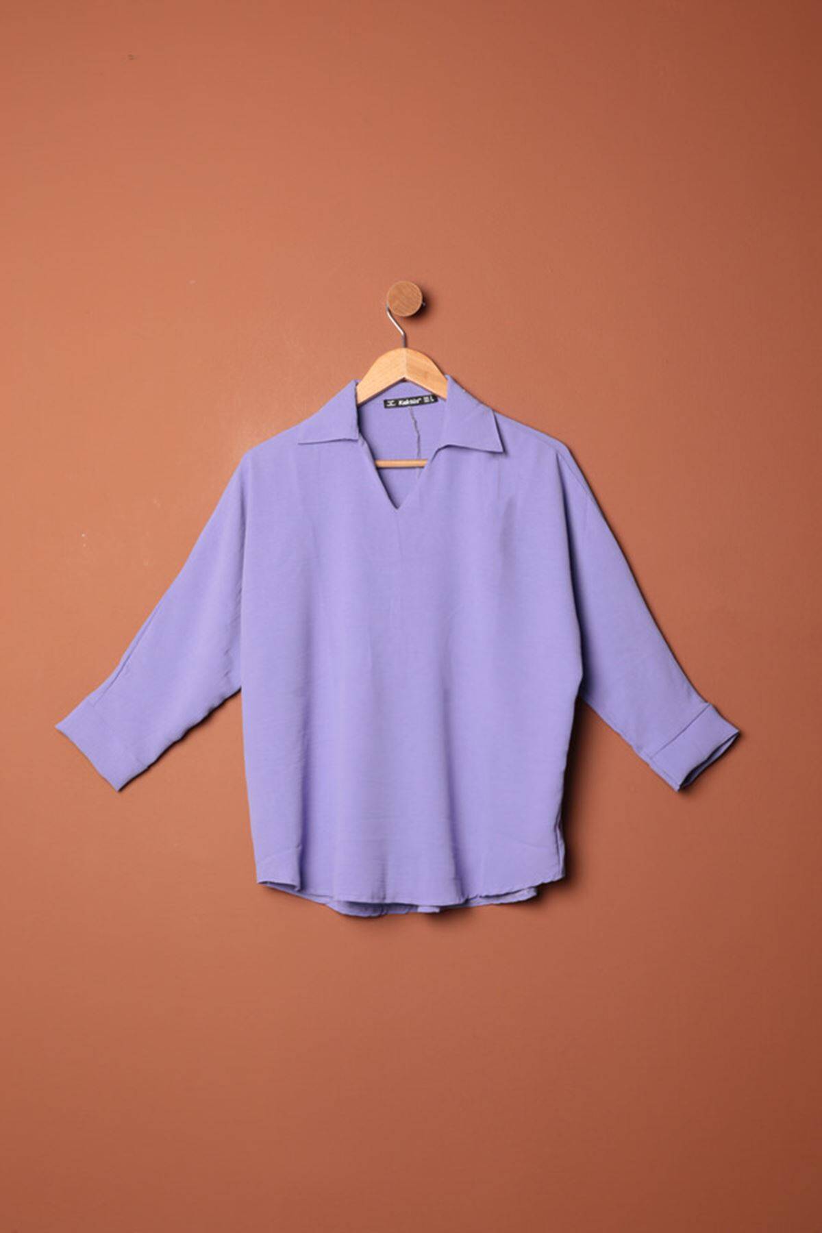 Aerobin Kumaş V Gömlek Yaka Kadın Gömlek-Lila