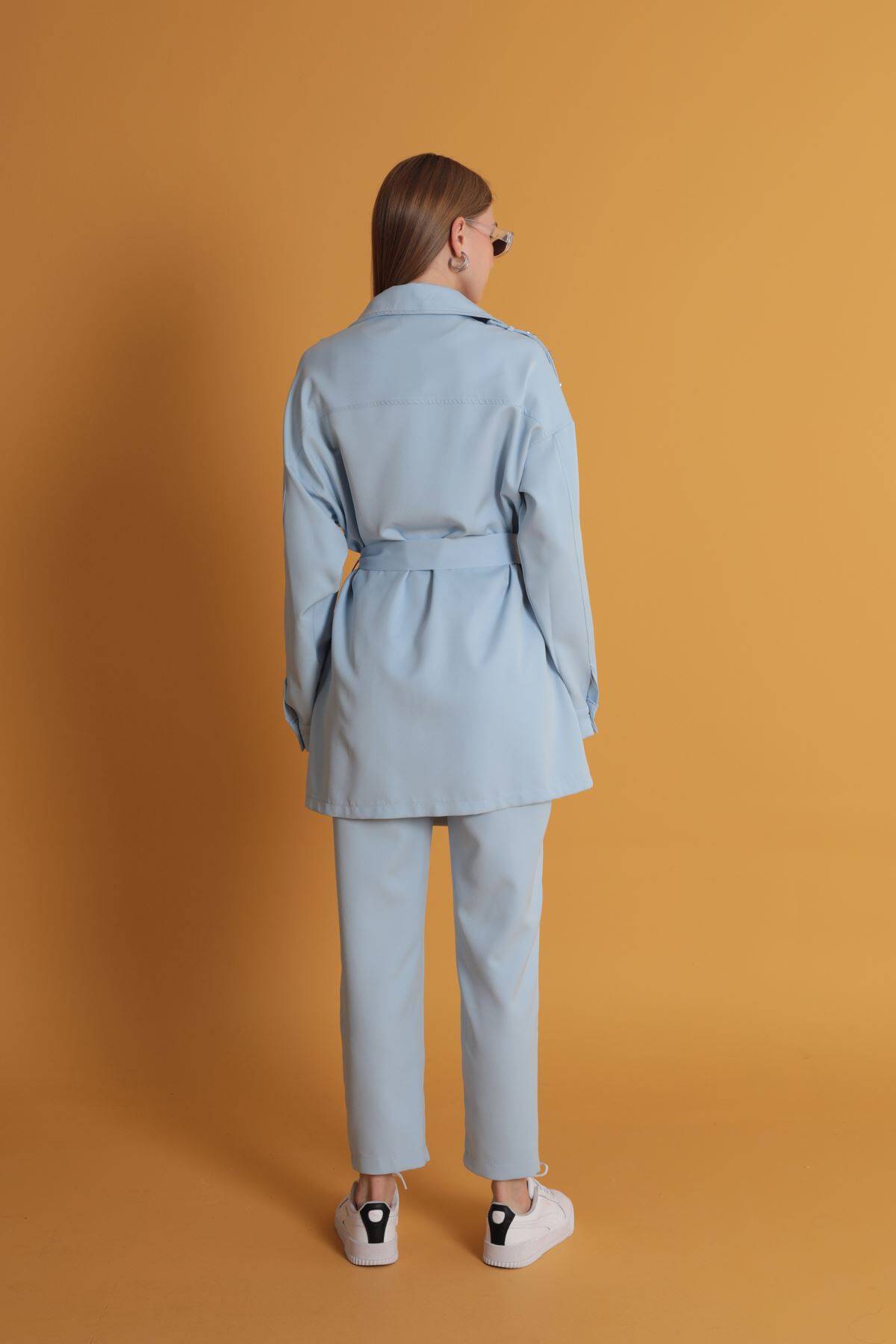 Apoletleri Taşlı Kadın Bebemavi Ceket