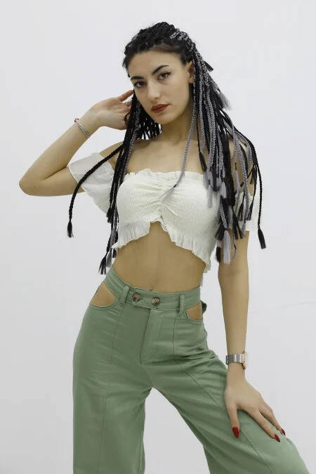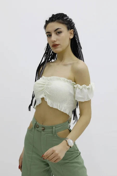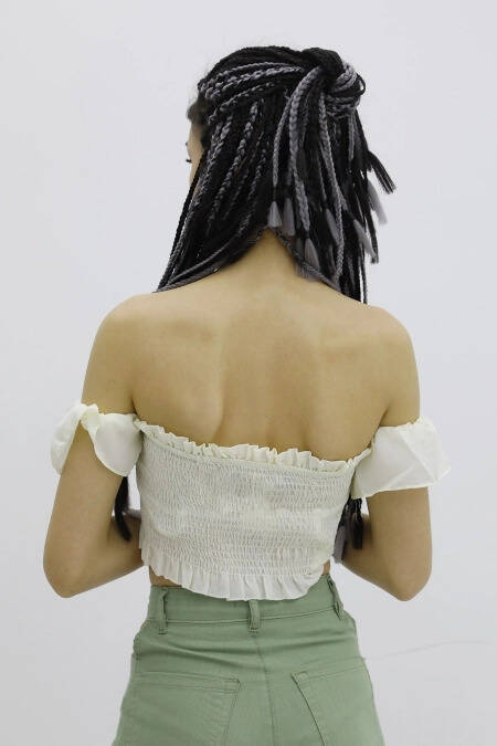 Balon Kol Lastikli Büstiyer Ekru - P-019964