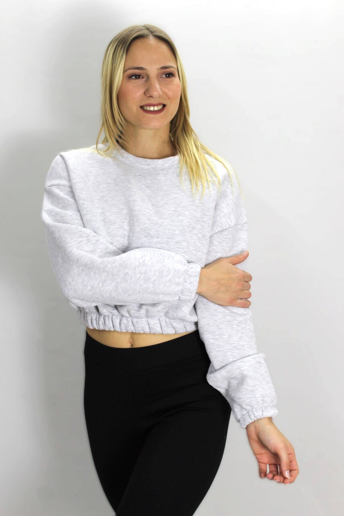 Bel Lastikli Bisiklet Yaka Sweat Gri - 07100