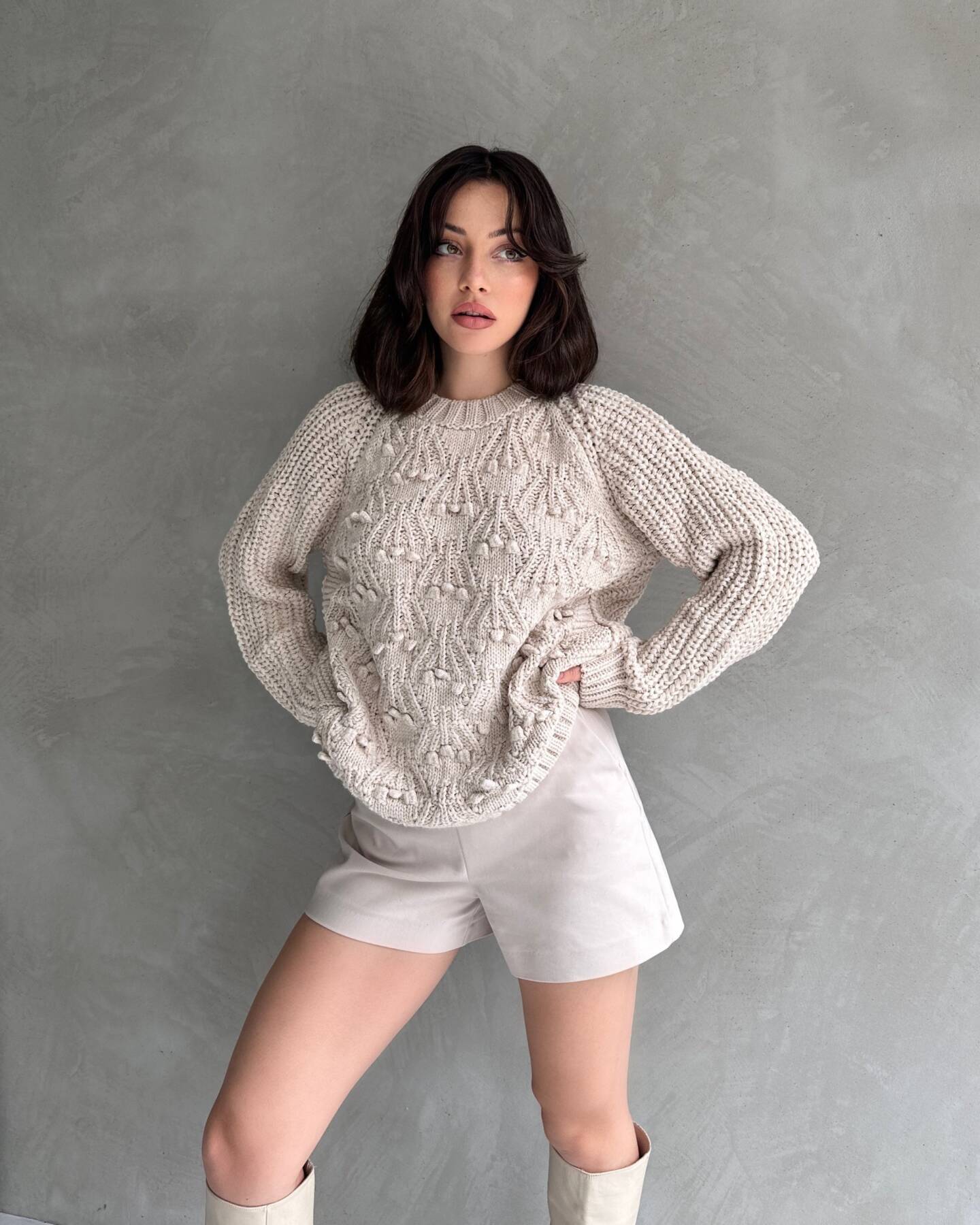 Bisiklet Yaka Bürümcük Detaylı Triko Kazak