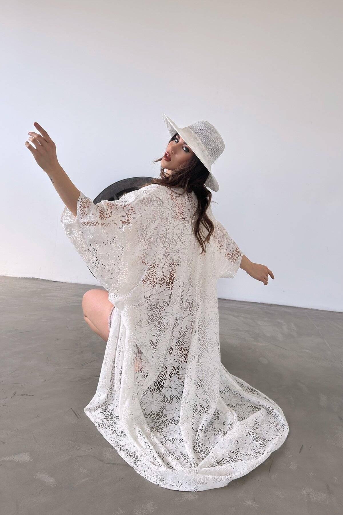 Çicek Desenli Uzun Güpür Kimono