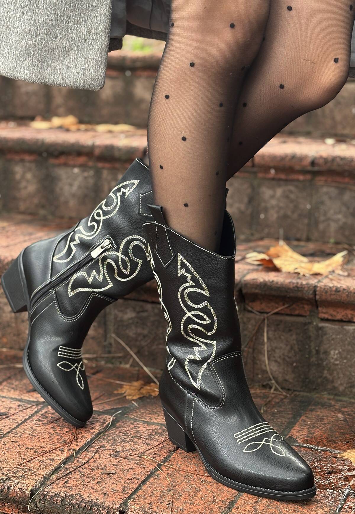 Detay: Topuklu Diz Altı Koboy Çizme