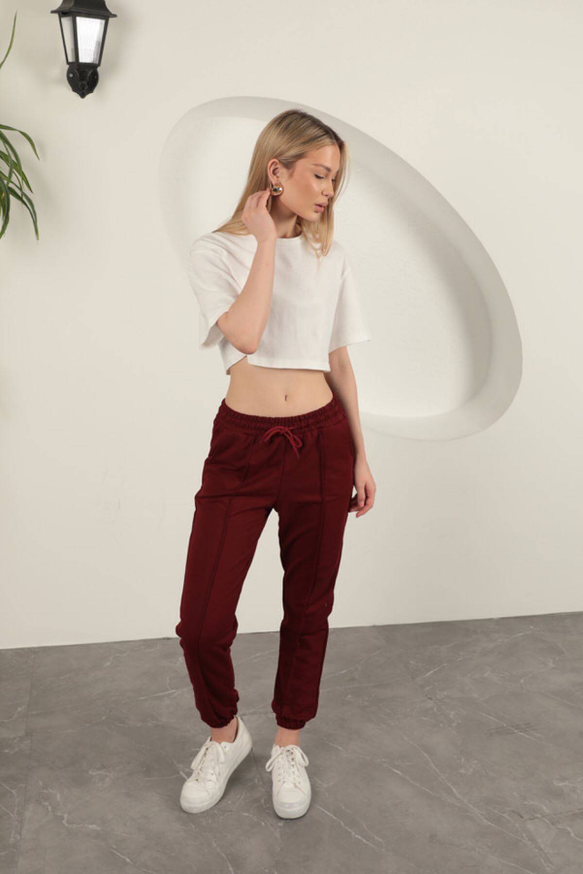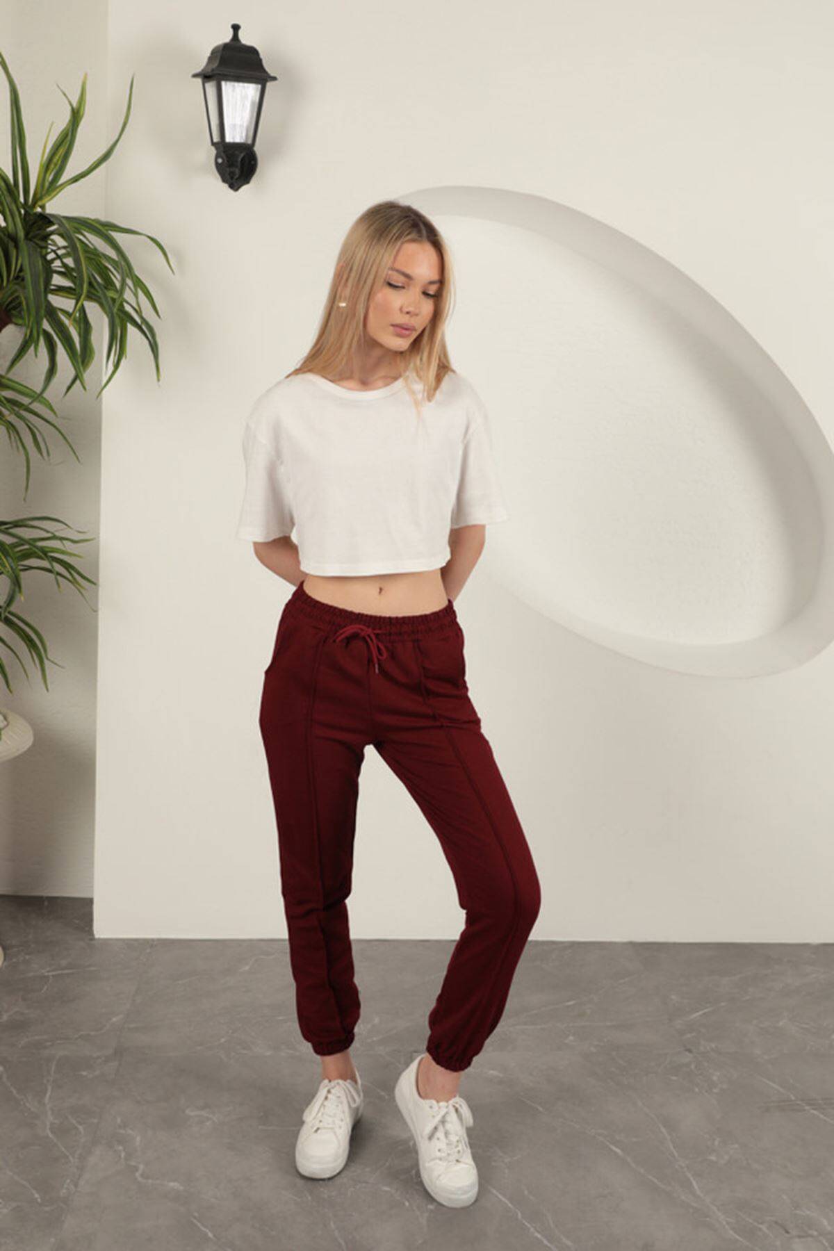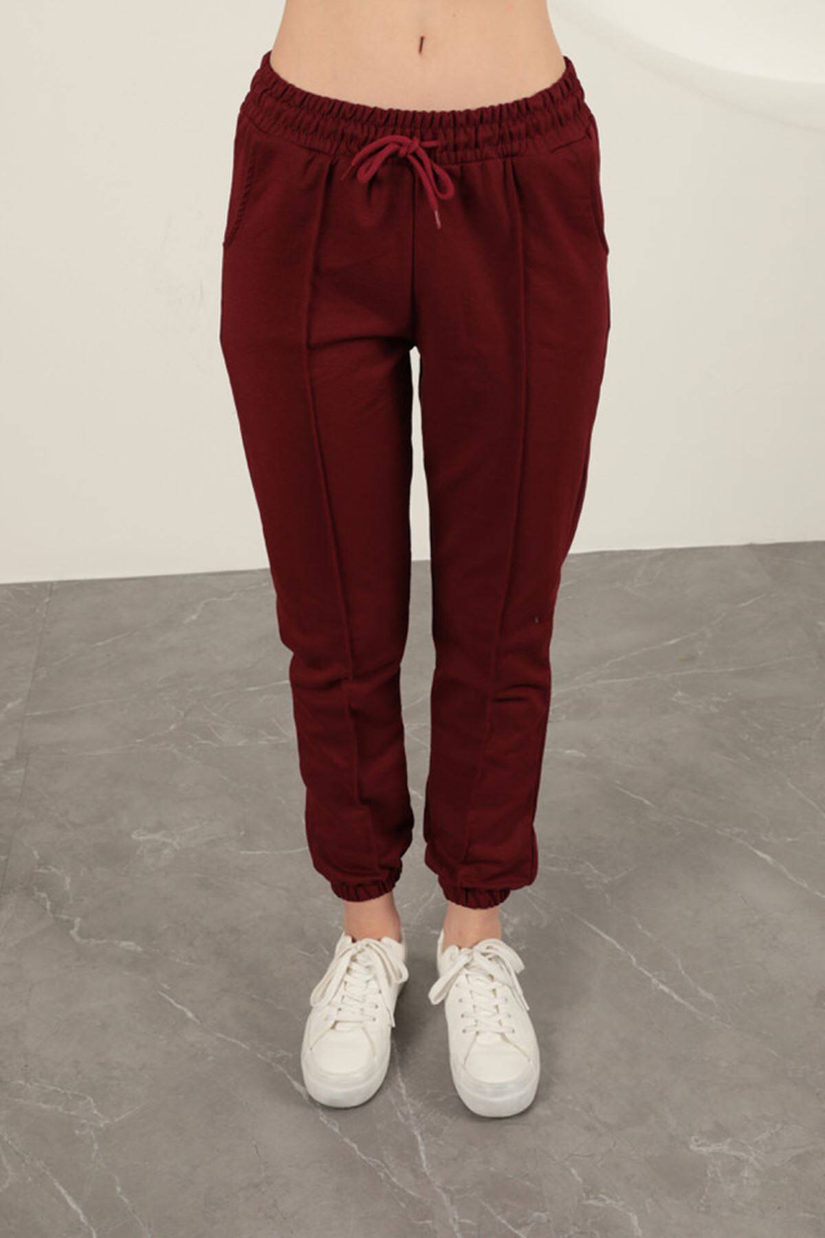 İki İplik Kumaş Çimalı Kadın Eşofman-Bordo