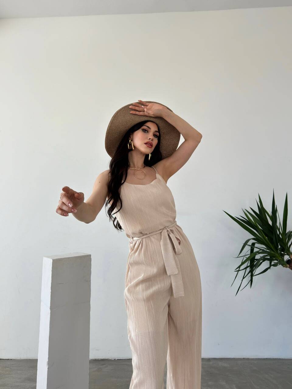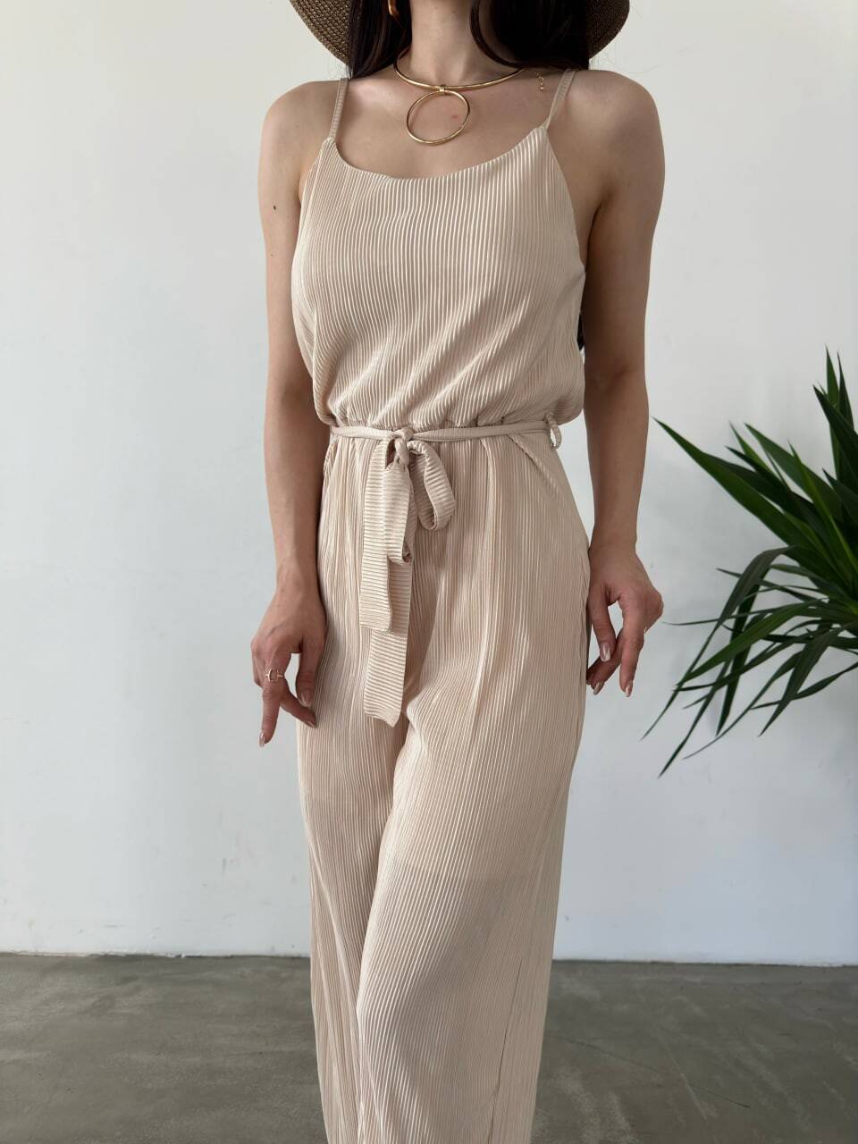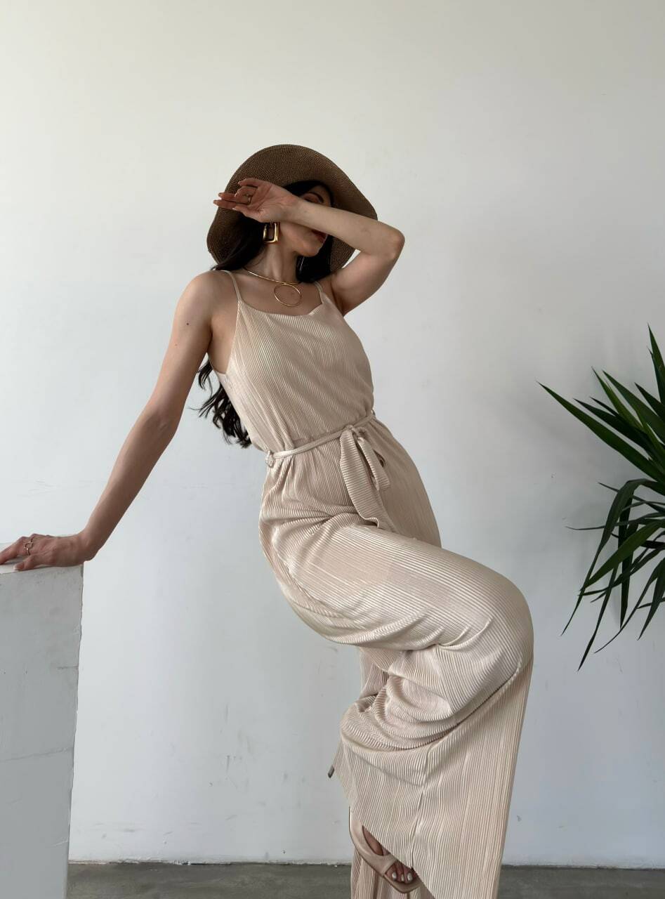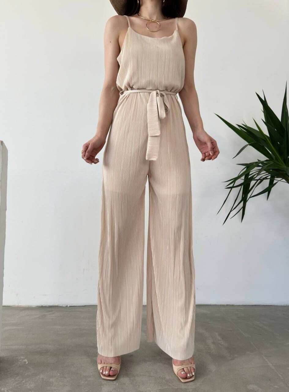 İp Askılı Kuşaklı Krinkle Tulum