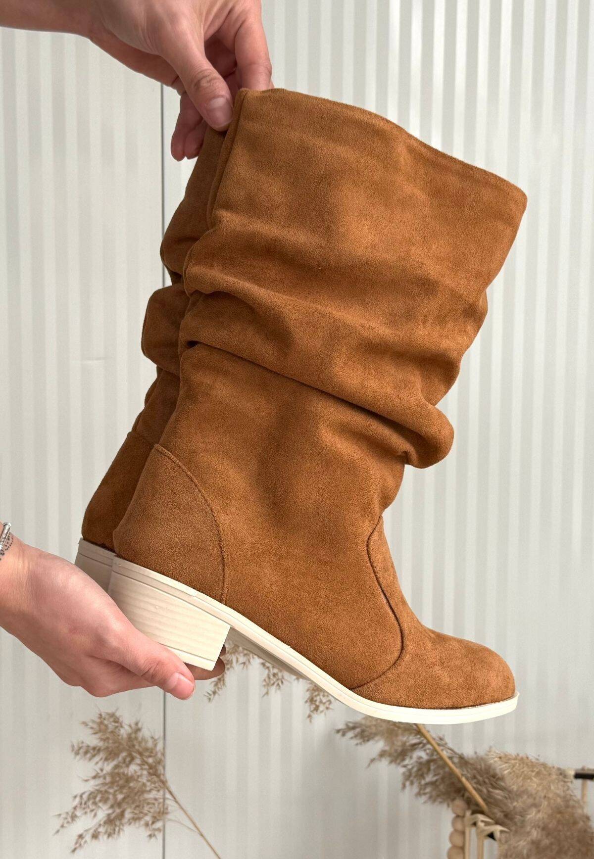 Jolin Taba Süet Topuklu Çizme