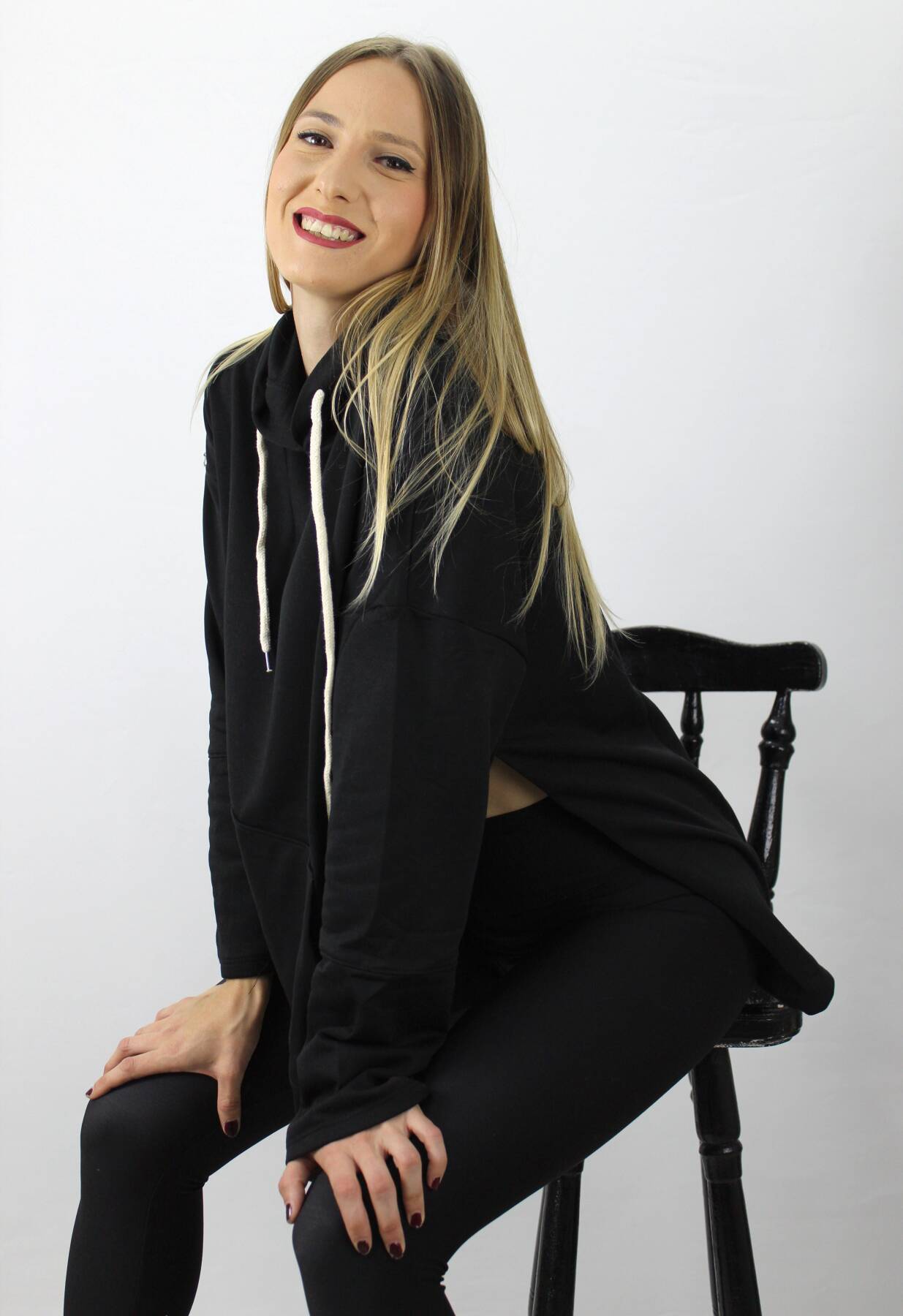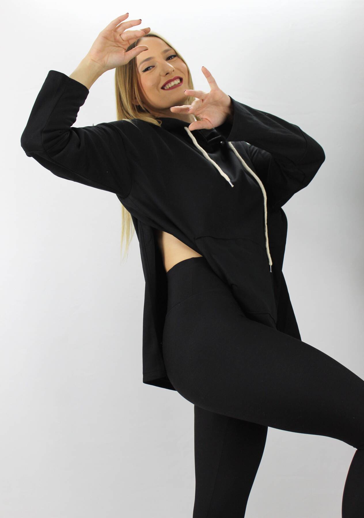 Kapşonlu Yan Yırtmaçlı Sweat Siyah - 21R1178