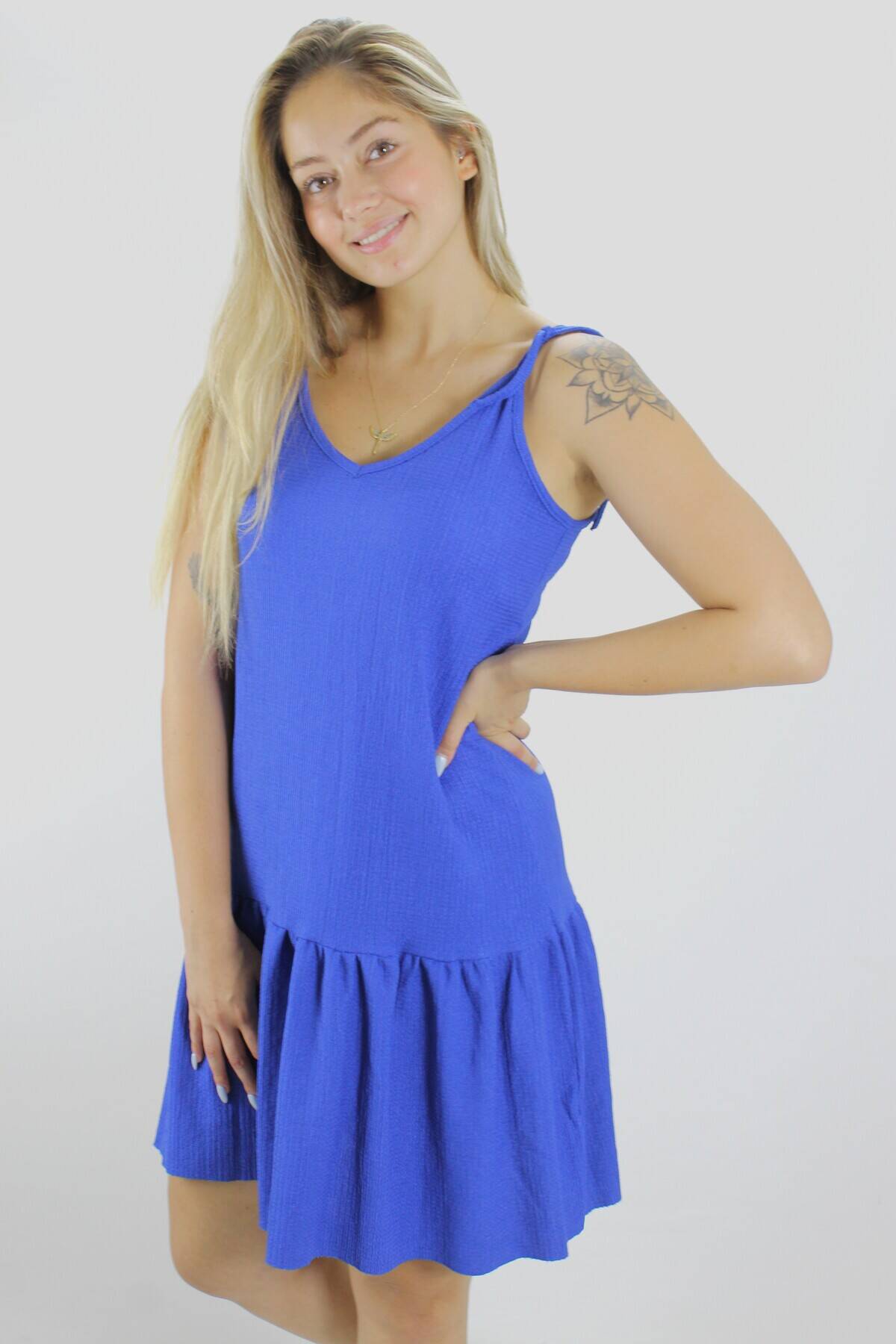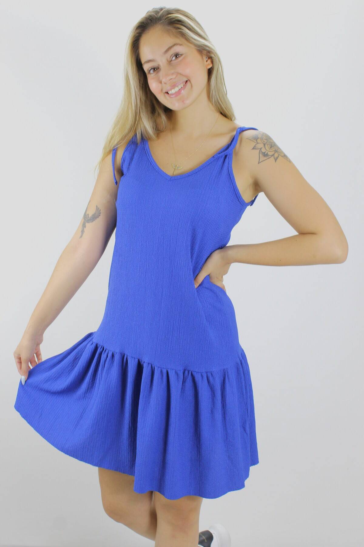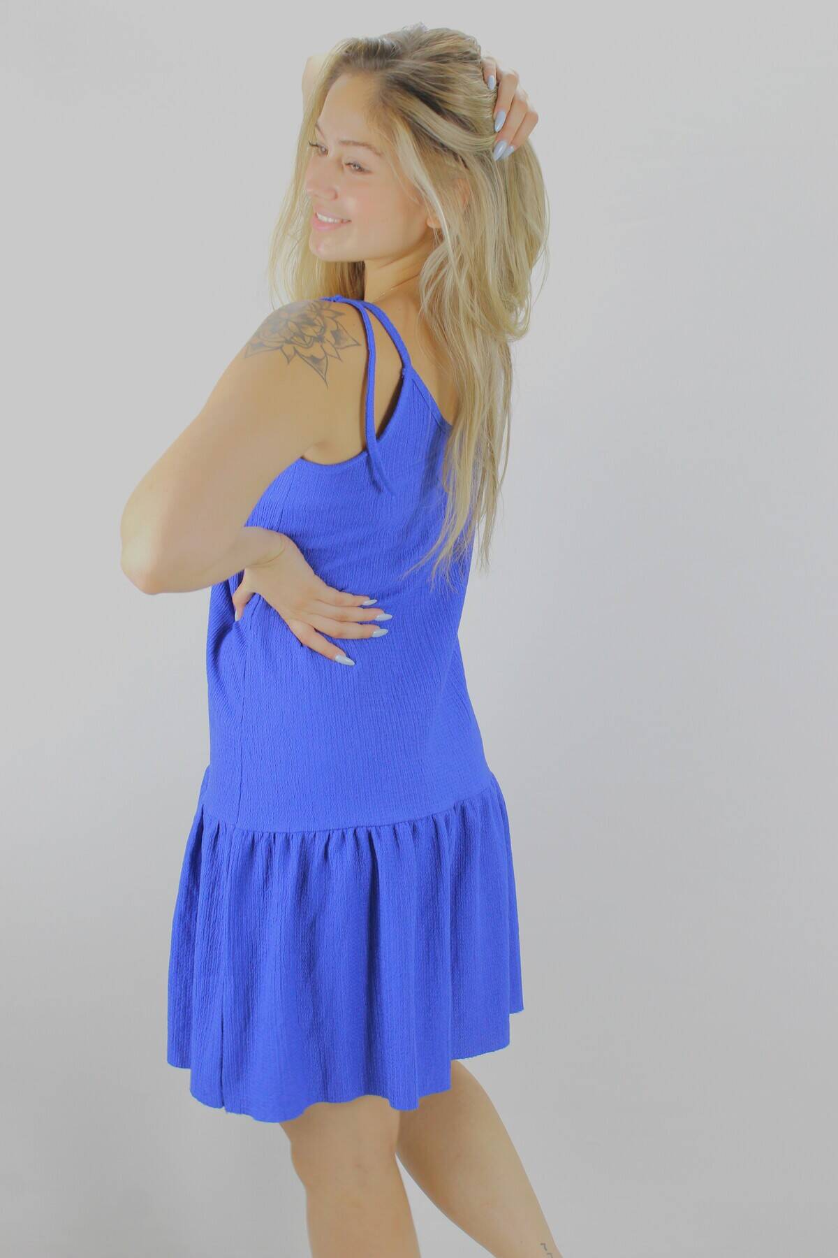 Krinkıl İp Askılı Elbise Mavi - 1456.65