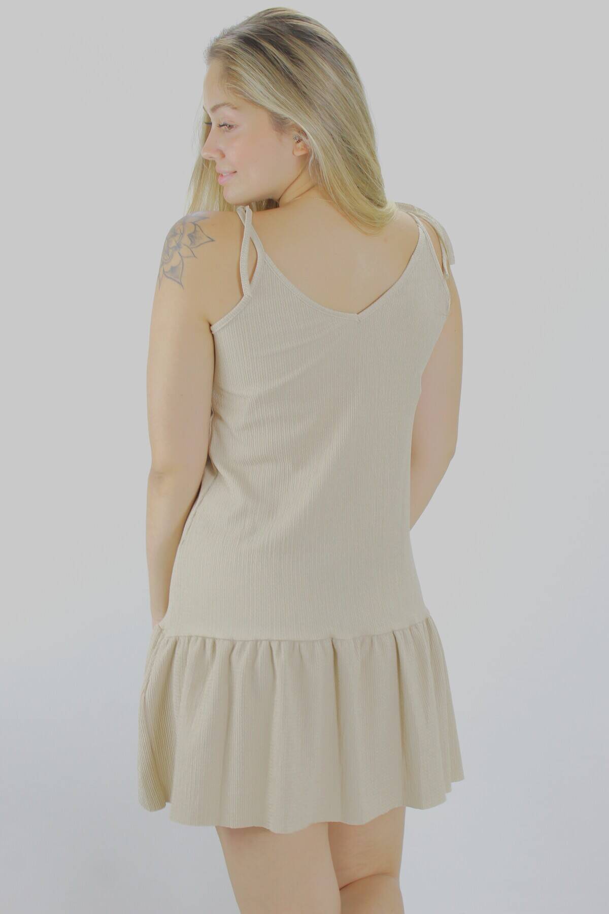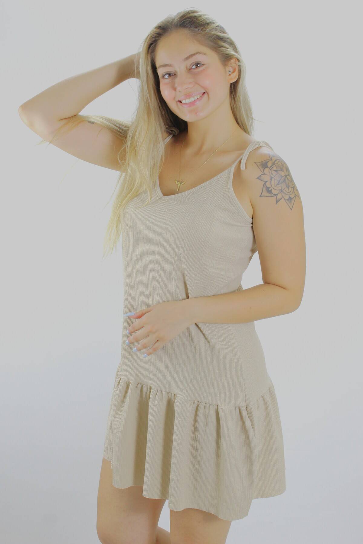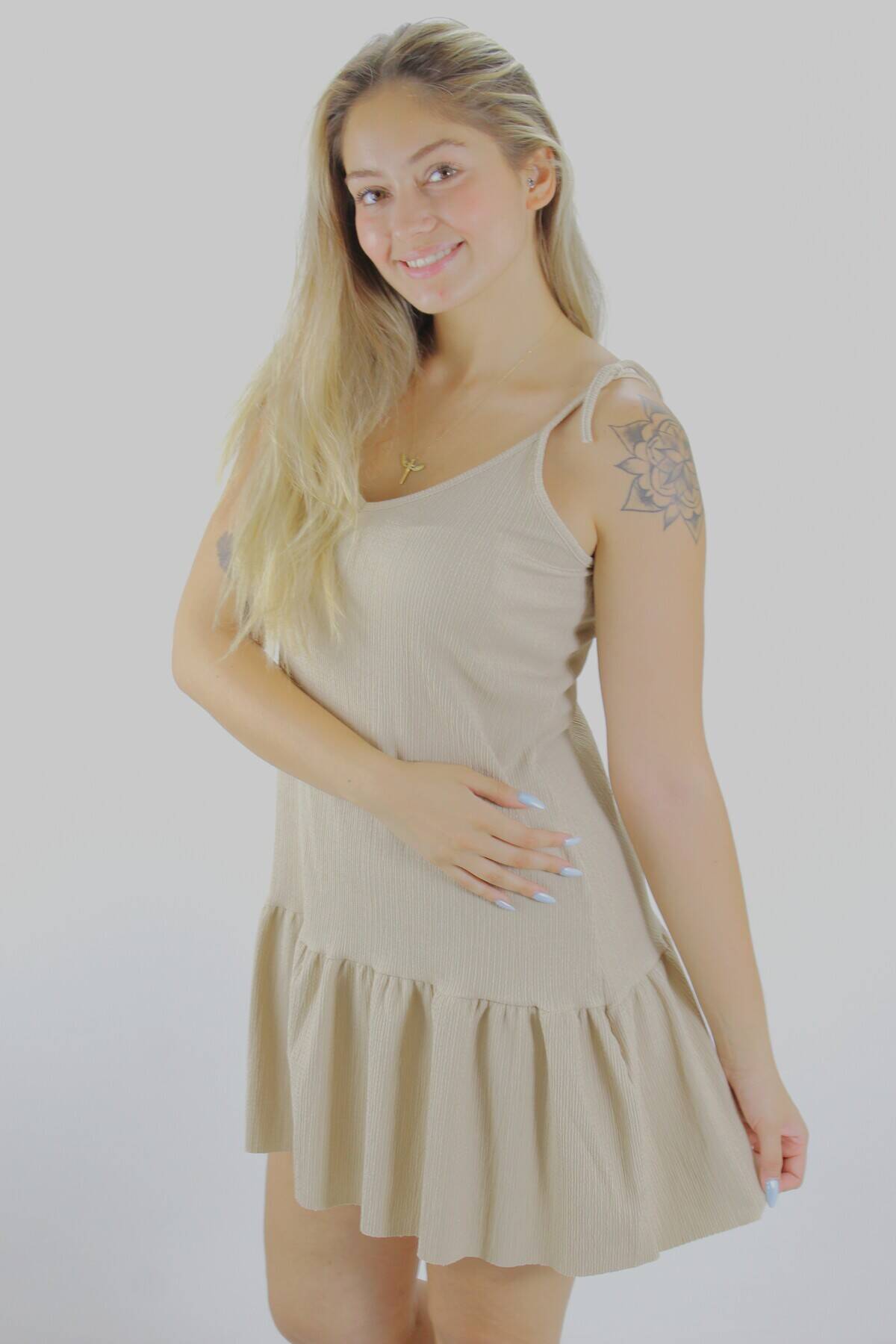 Krinkıl İp Askılı Elbise Vizon - 1456.65