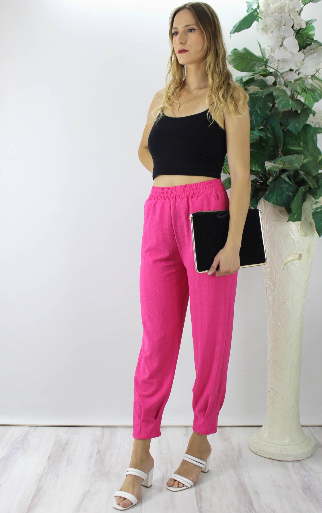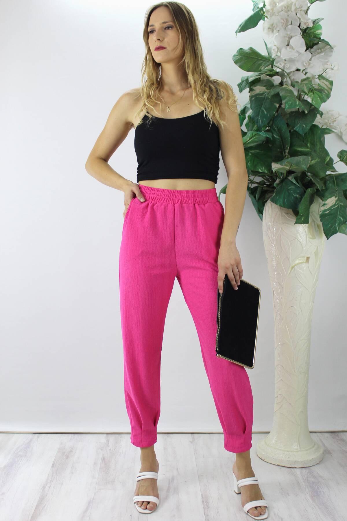 Krinkıl Paça Pensli Pantolon Fuşya - 130.265