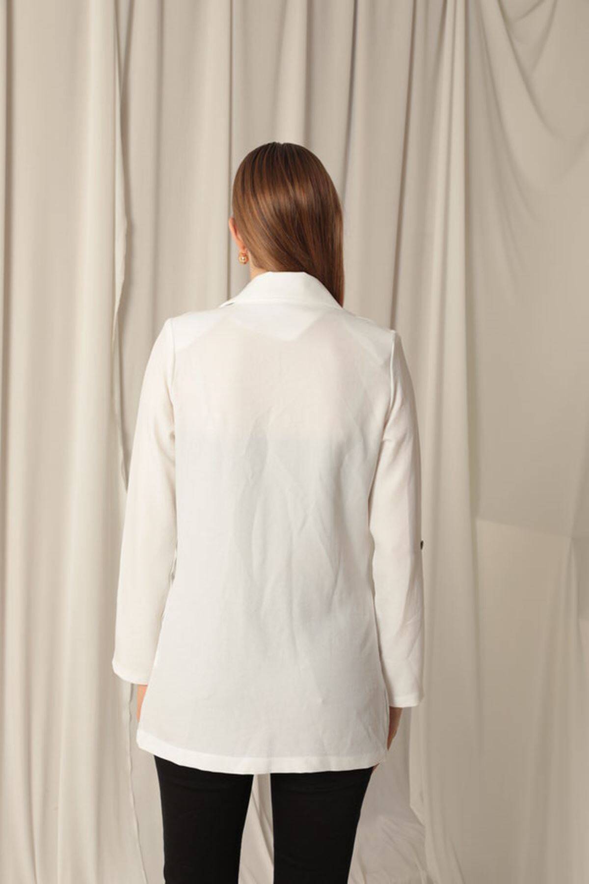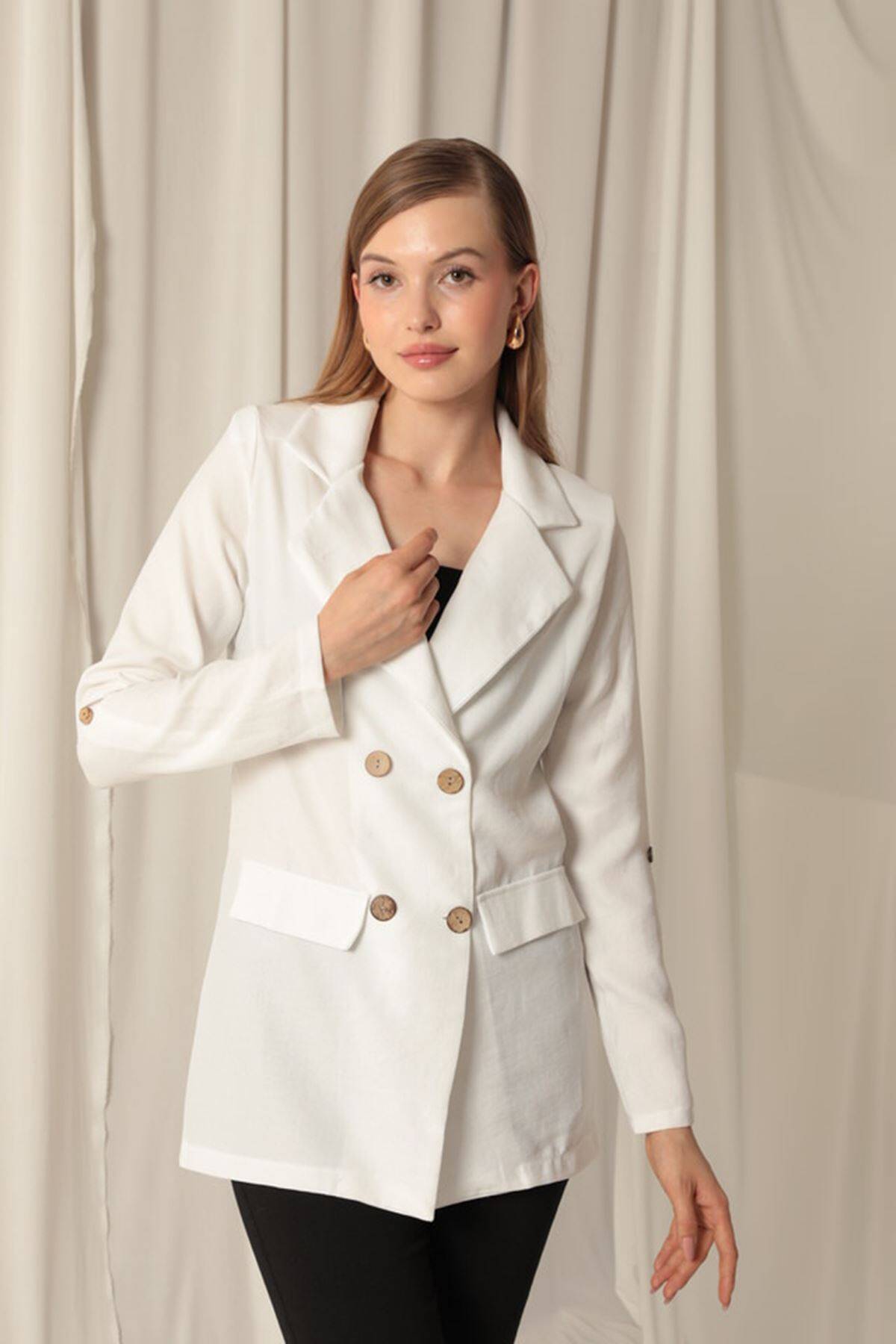 Melanj Keten Kumaş Kadın Ekru Ceket