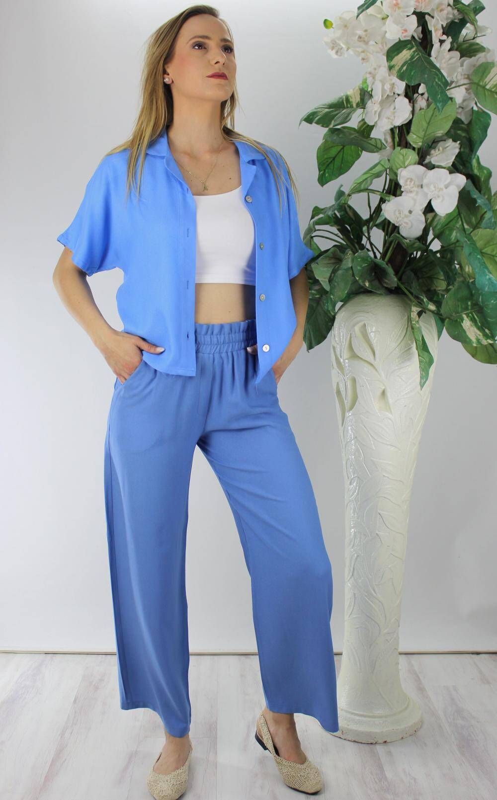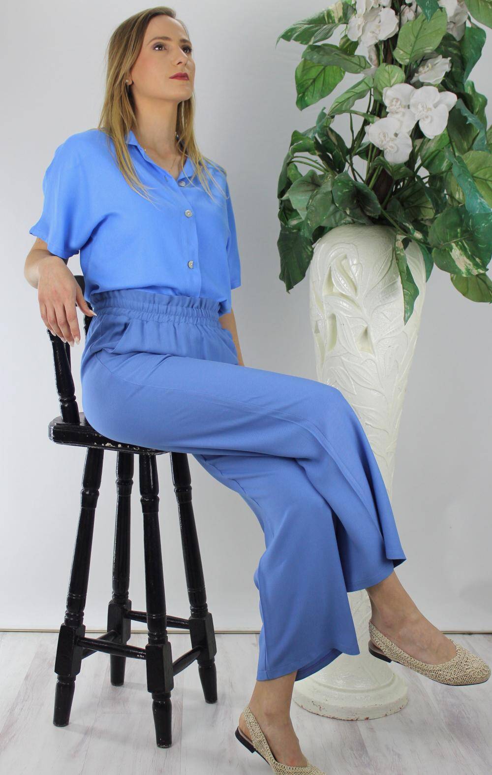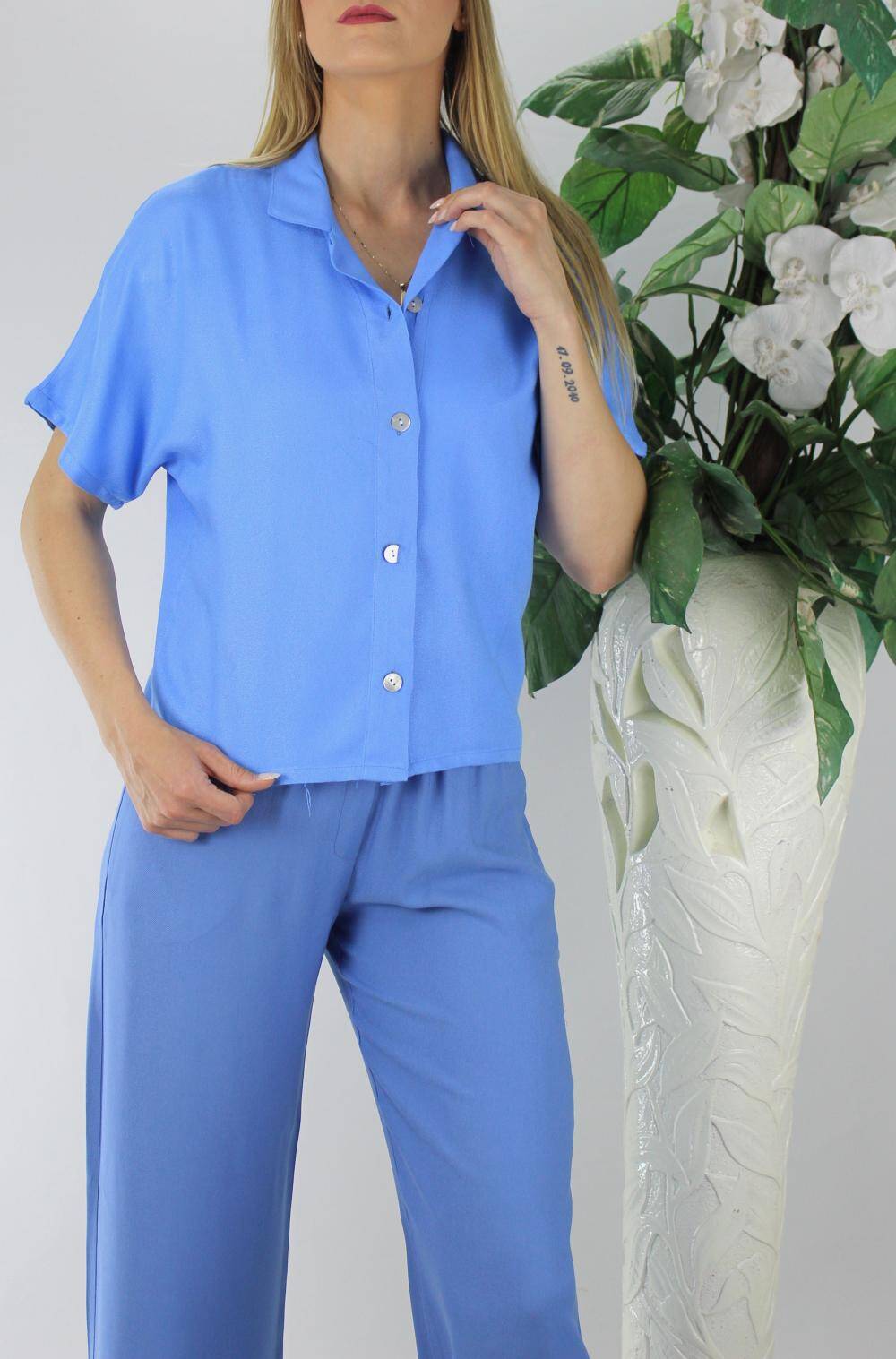 Sedef Düğmeli Krep Gömlek Mavi - 1288.65