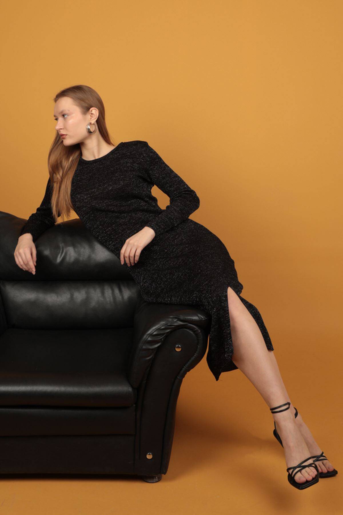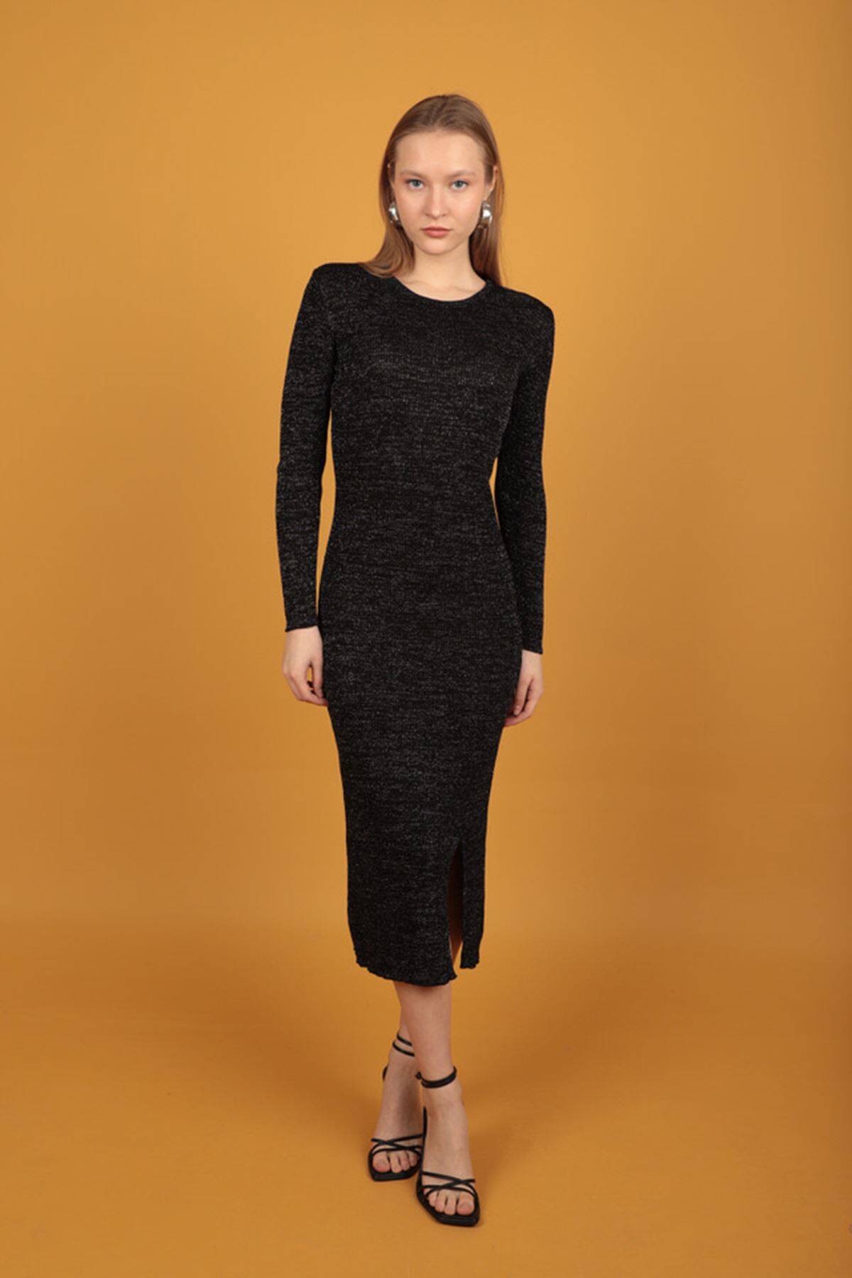 Simli Triko Siyah Kadın Elbise, triko kumaşın sıcaklığı ve simli detayların ışıltısıyla göz alıcı bir seçenek sunar. Siyah rengin klasik şıklığı, bu elbiseyi hem günlük hem de özel davetlerde tercih edilebilir kılar.Şıklığı ve konforu bir arada sunan bu elbise koleksiyonlarınıza değer katacaktır.
