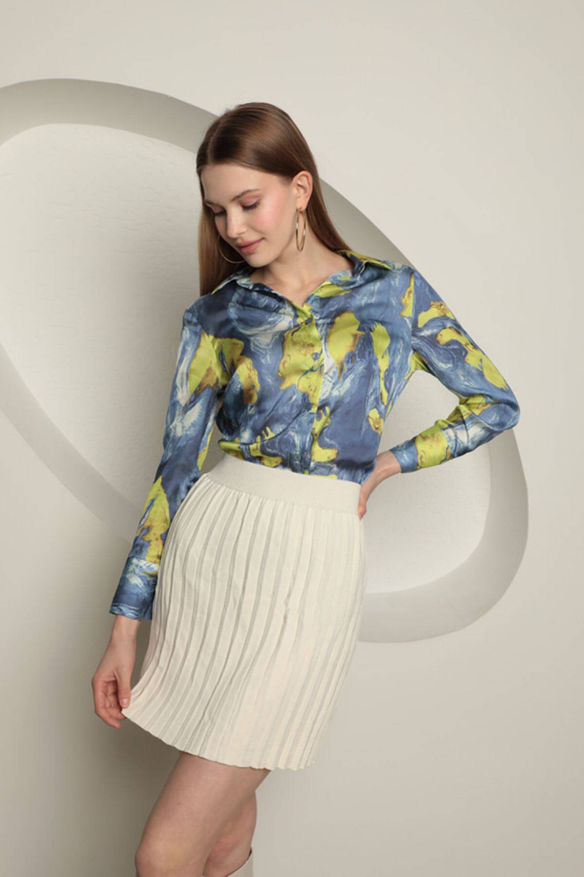 Triko Kadın Pileli Etek-Ekru