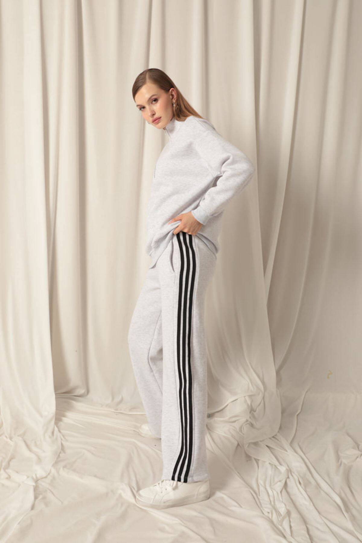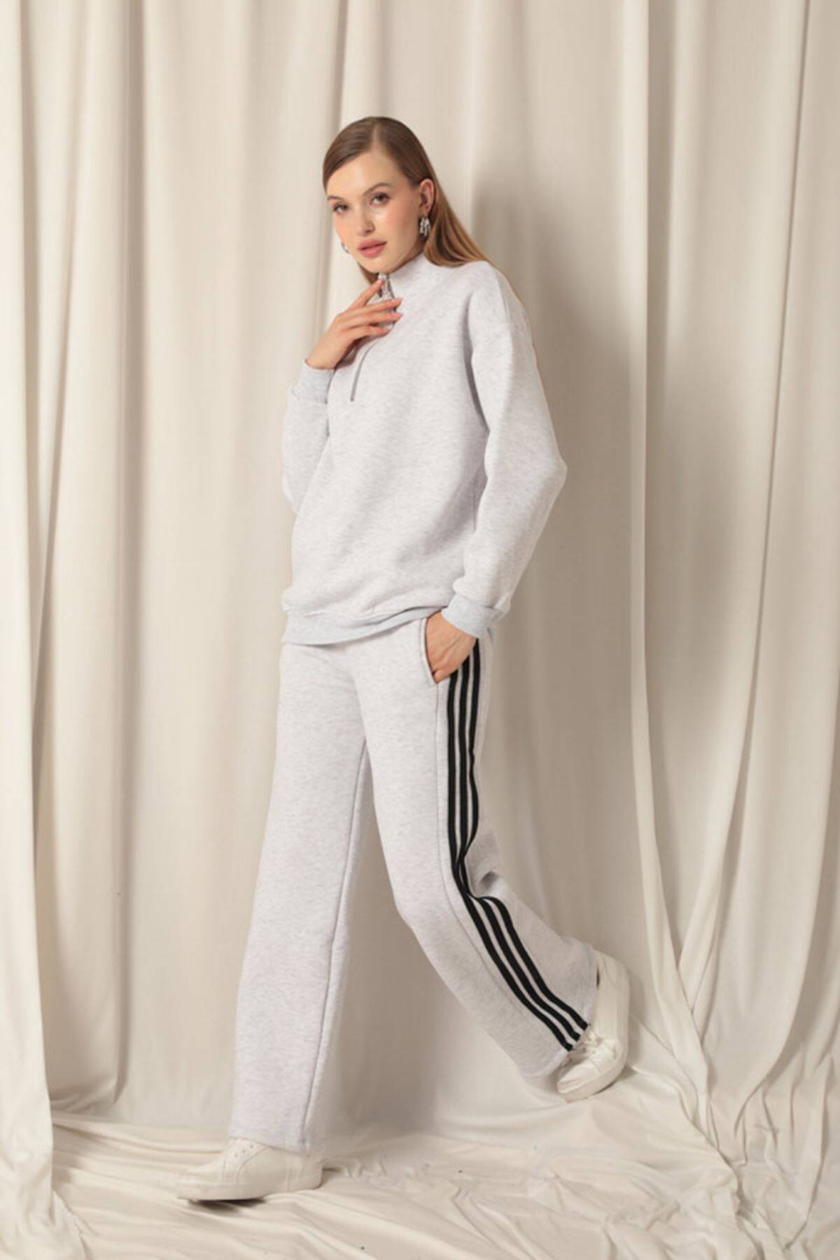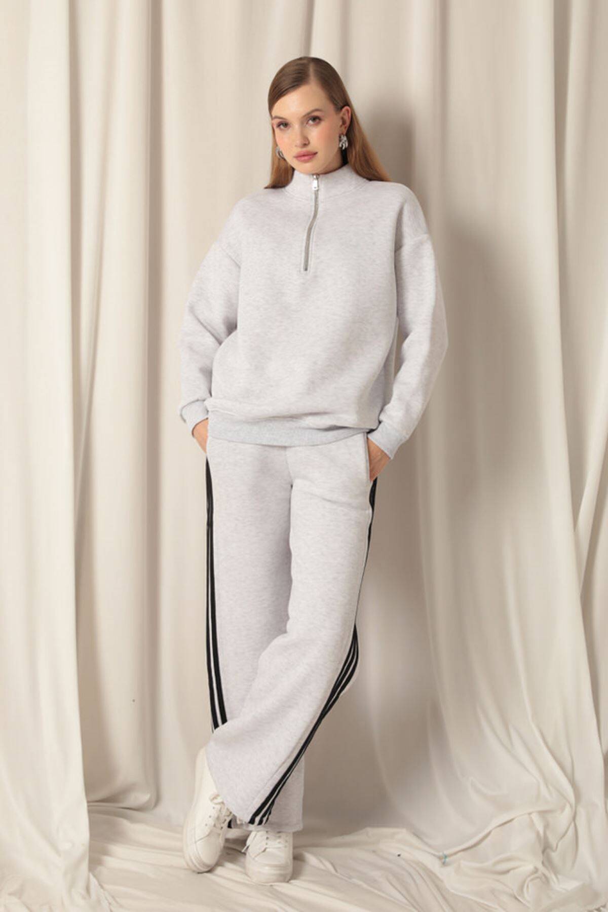 Üç İplik Biyeli Kadın Açık Gri Eşofman