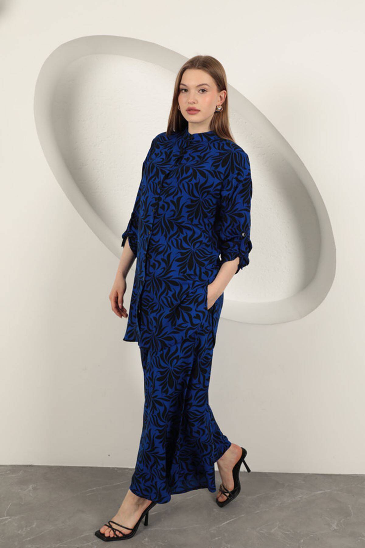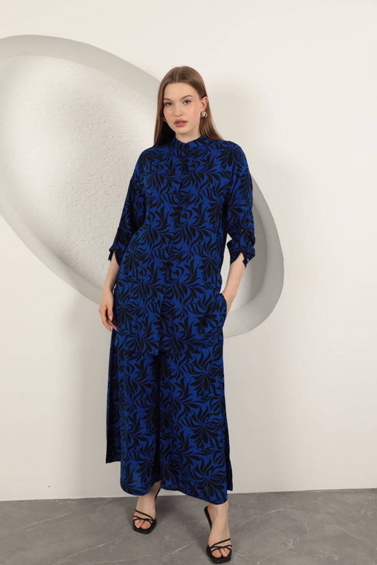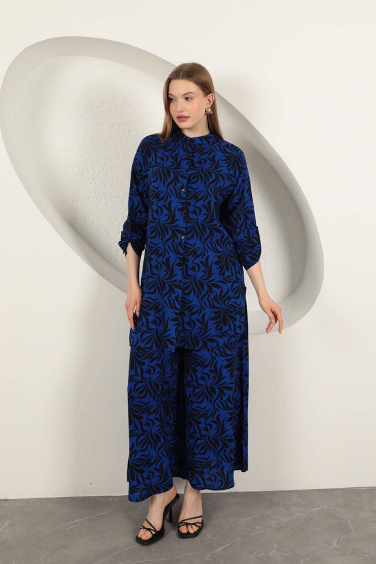 Viskon Kumaş Desenli Kadın Takım-Saks