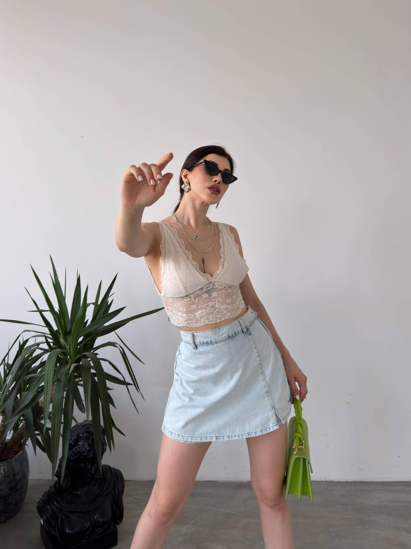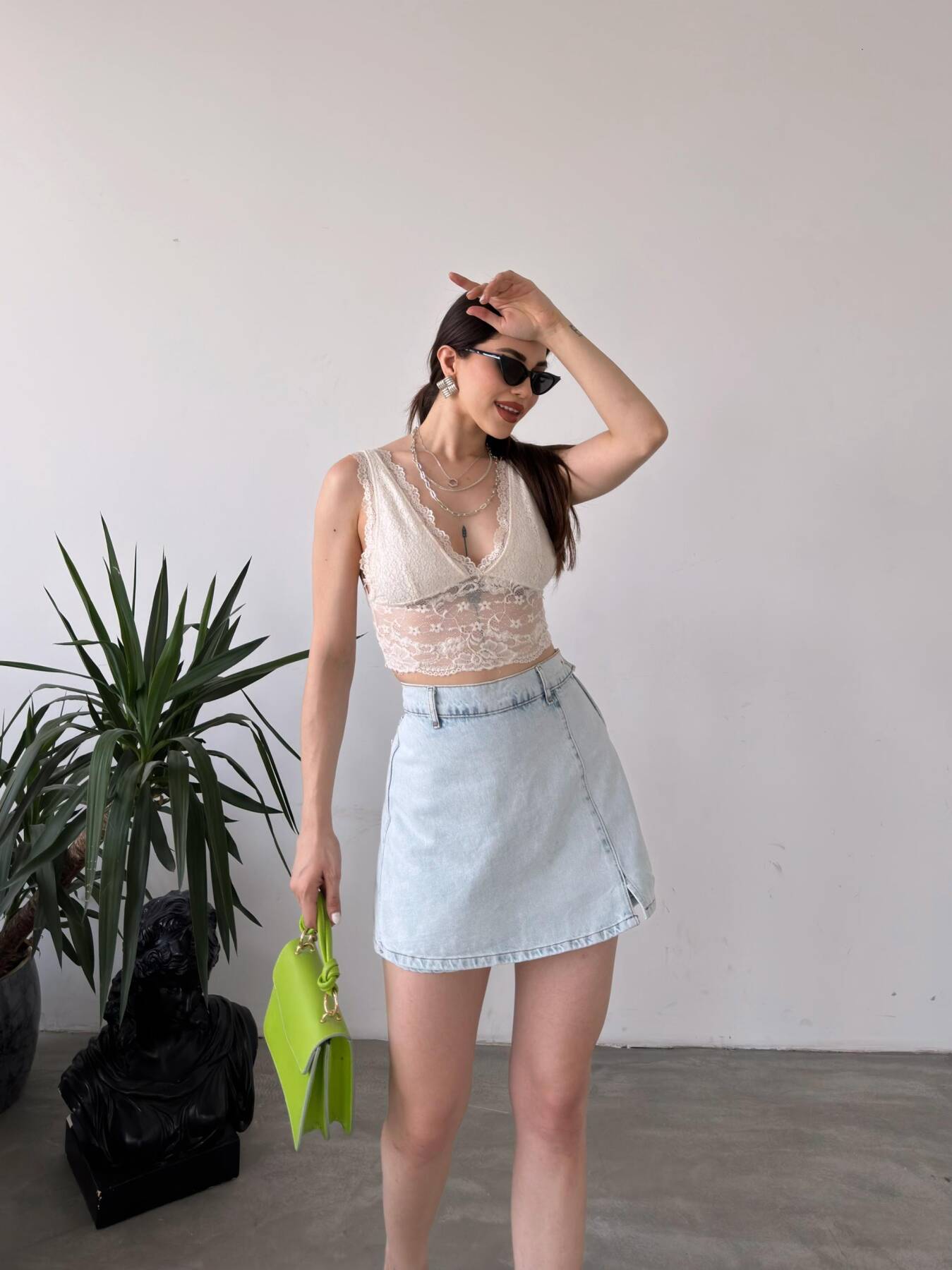 Yırtmaç Detaylı Denim Şort Etek