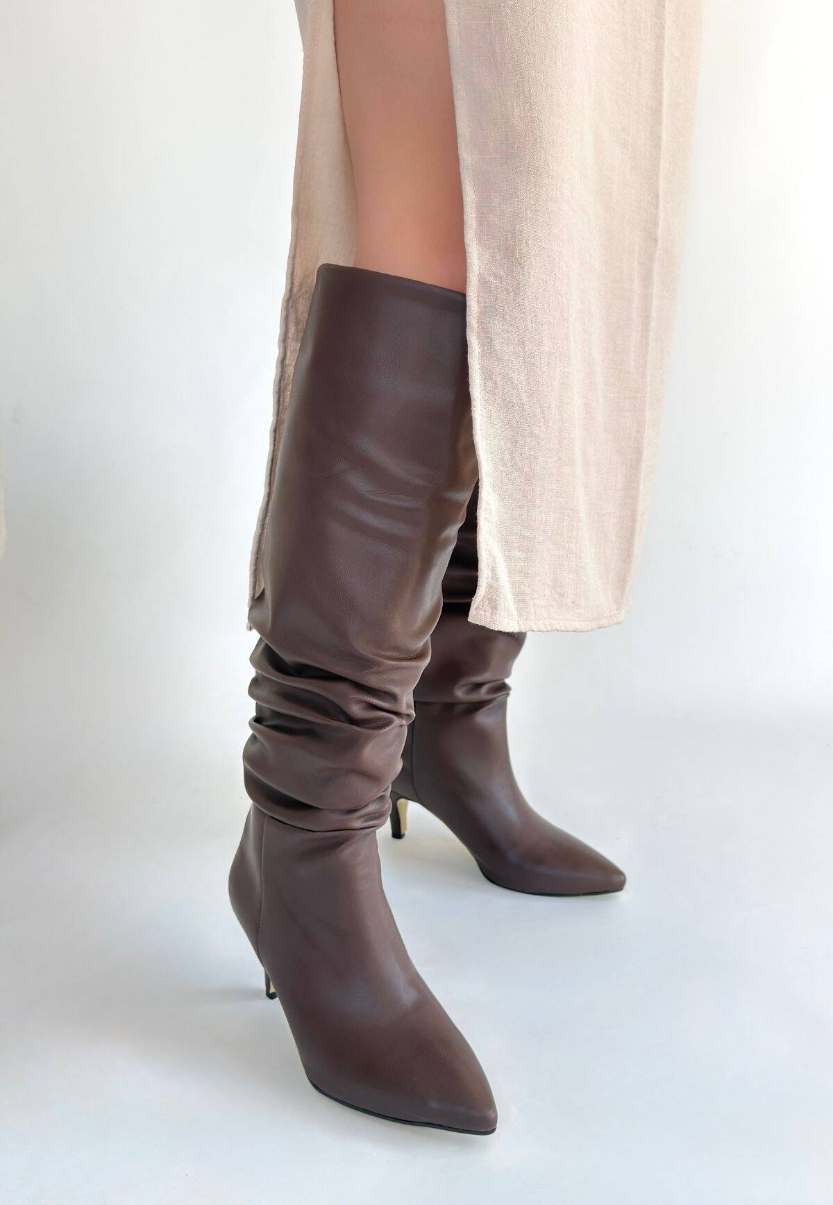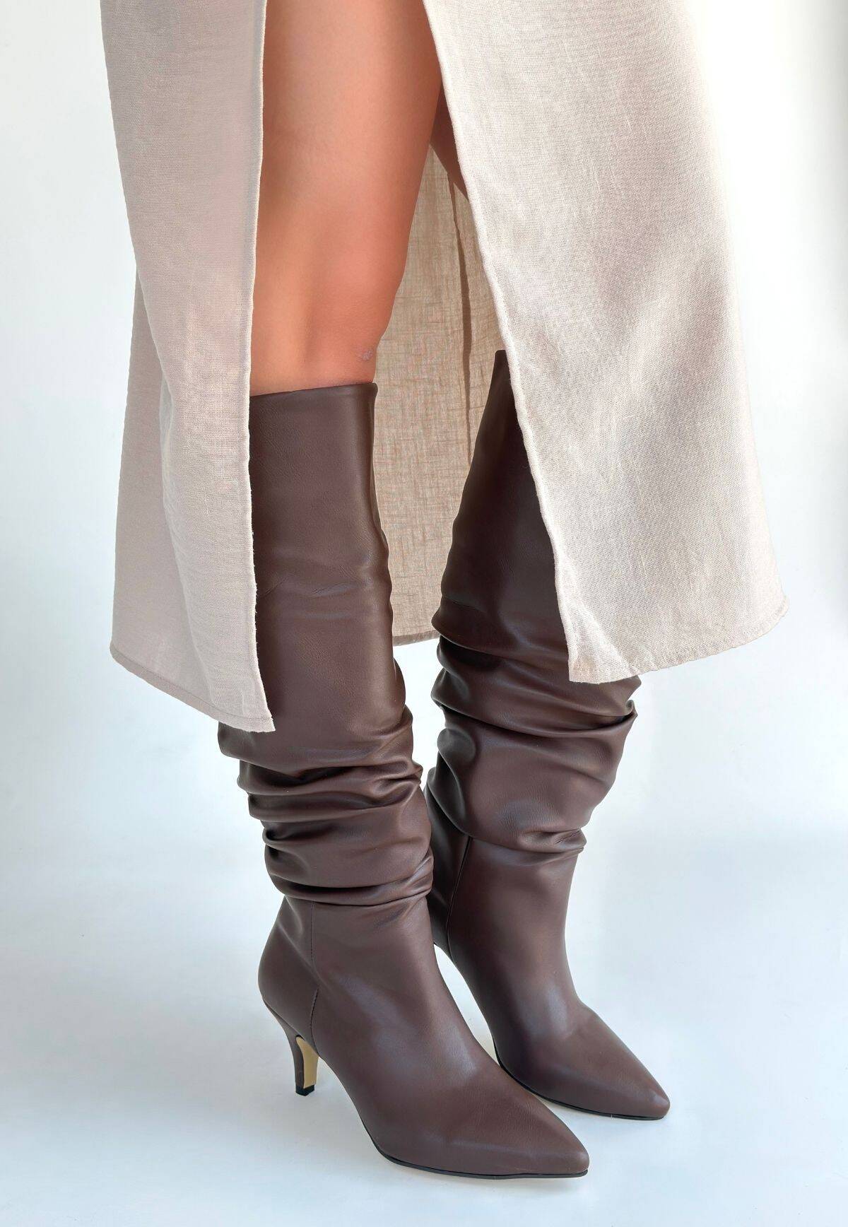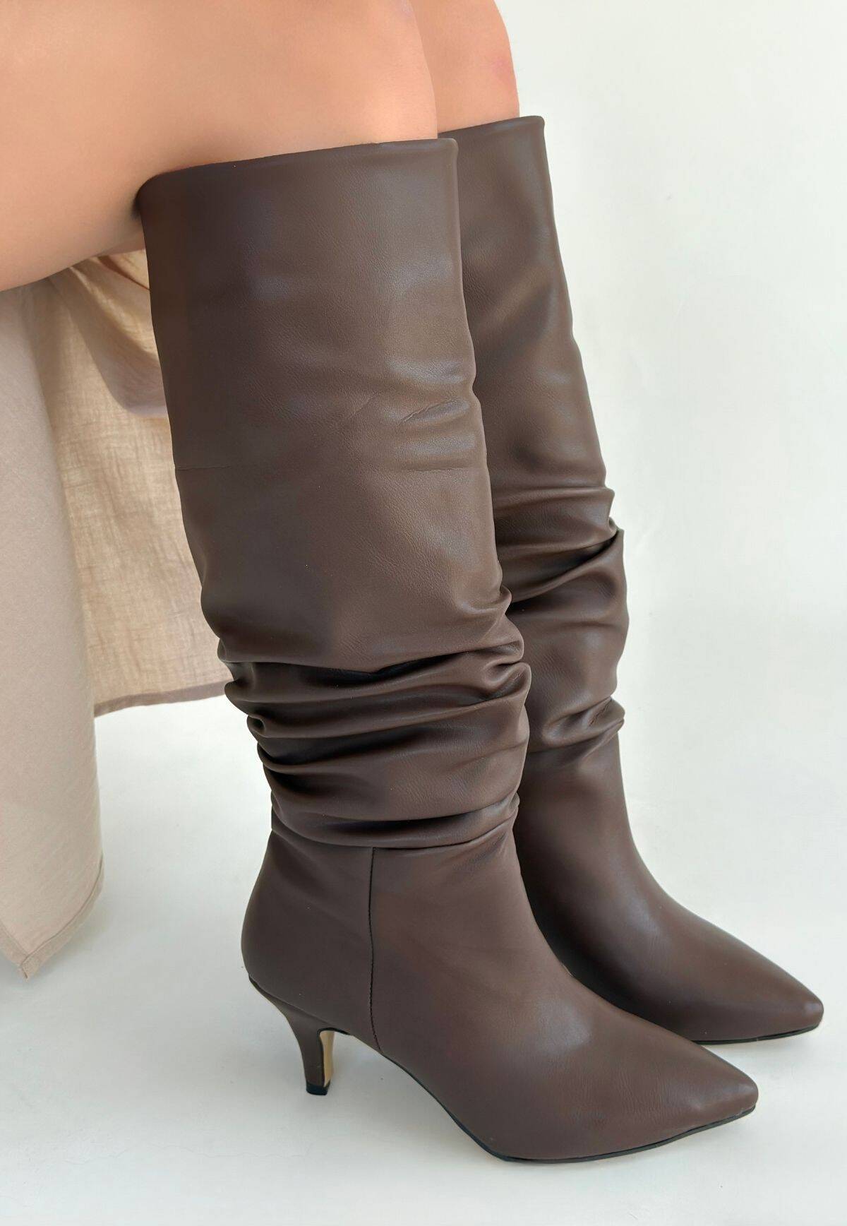 Detay : Topuklu Diz Altı Körüklü Çizme